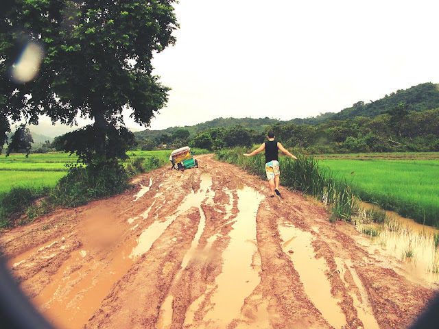 After swimming, splashing around, and lying on the shore, we headed back to the town. Of course, the trek back was just as hard, even harder. We pushed and pulled our tricycle, walked barefoot in the mud, slipped a couple of times, and even encountered a couple of pigs and a carabao in the side fields.